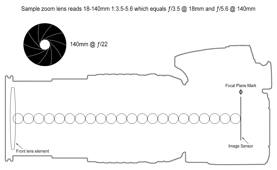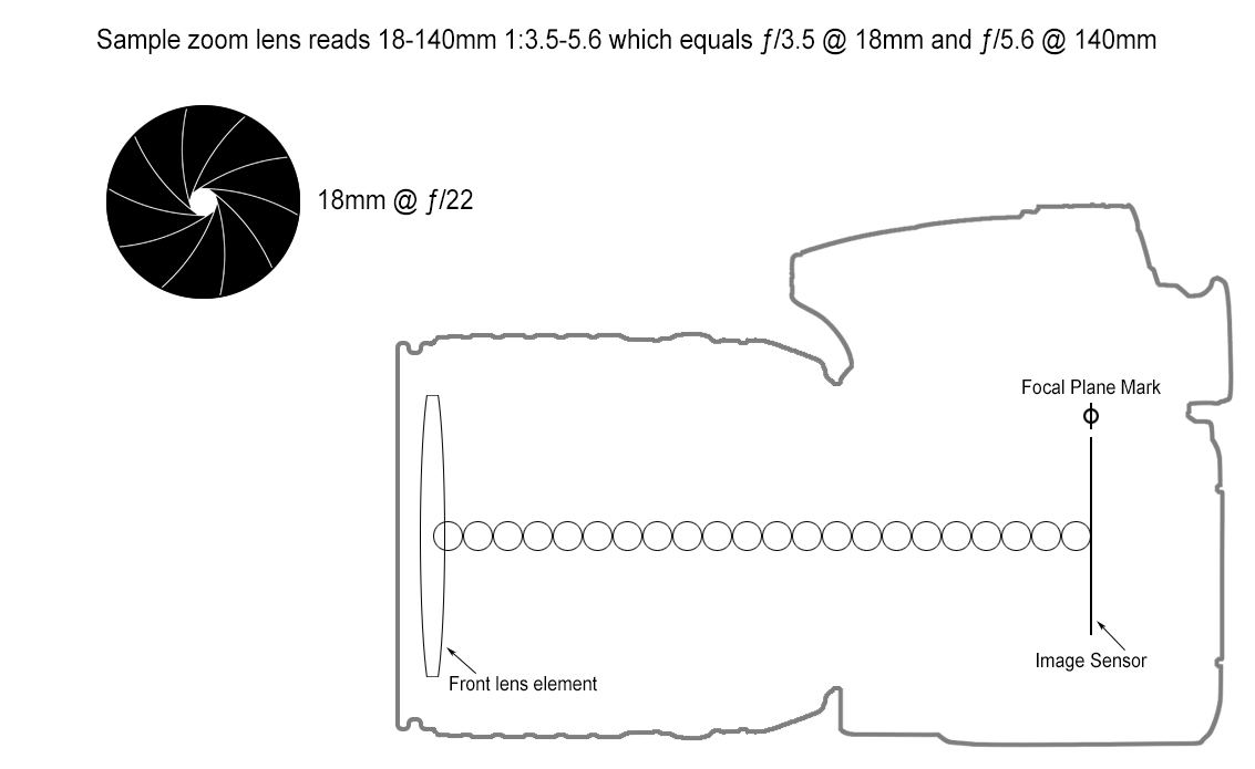 Focal length, usually represented in millimeters (mm), is the basic description of a photographic lens. It is not a measurement of the actual length of a lens, but a calculation of an optical distance from the point where light rays converge to form a sharp image of an object to the digital sensor or 35mm film at the focal plane in the camera. The focal length of a lens is determined when the lens is focused at infinity.